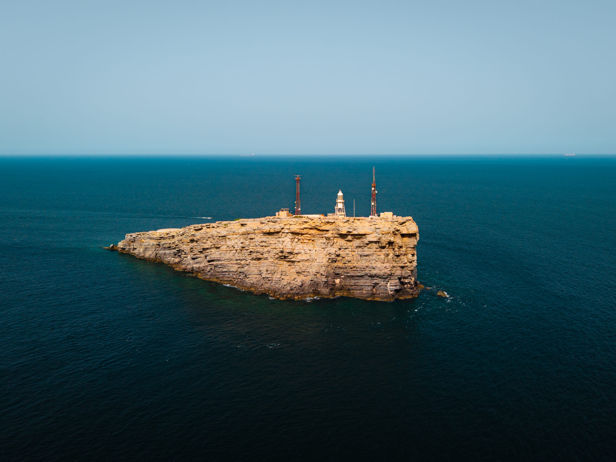 Didmar Lighthouse is a 24-meter-high hexagonal pyramidal skeletal tower painted white, with a lantern, gallery, and enclosed watch room. It exhibits two white flashes every 10 seconds (Fl (2) W 10s) with a range of 23 nautical miles. The lighthouse was established in 1914 as the first lighthouse in Oman, built by the British on Didmar Island in the strategic Strait of Hormuz. The decision to build it was made in 1909 by the Committee of Enquiry on Lighting and Buoying the Gulf. Initially lit by kerosene with a clockwork mechanism, it featured a 2nd order revolving lens manufactured by Chance Brothers in 1913. The lighthouse guides ships through the Strait of Hormuz, a vital route where 25% of the world’s oil passes.